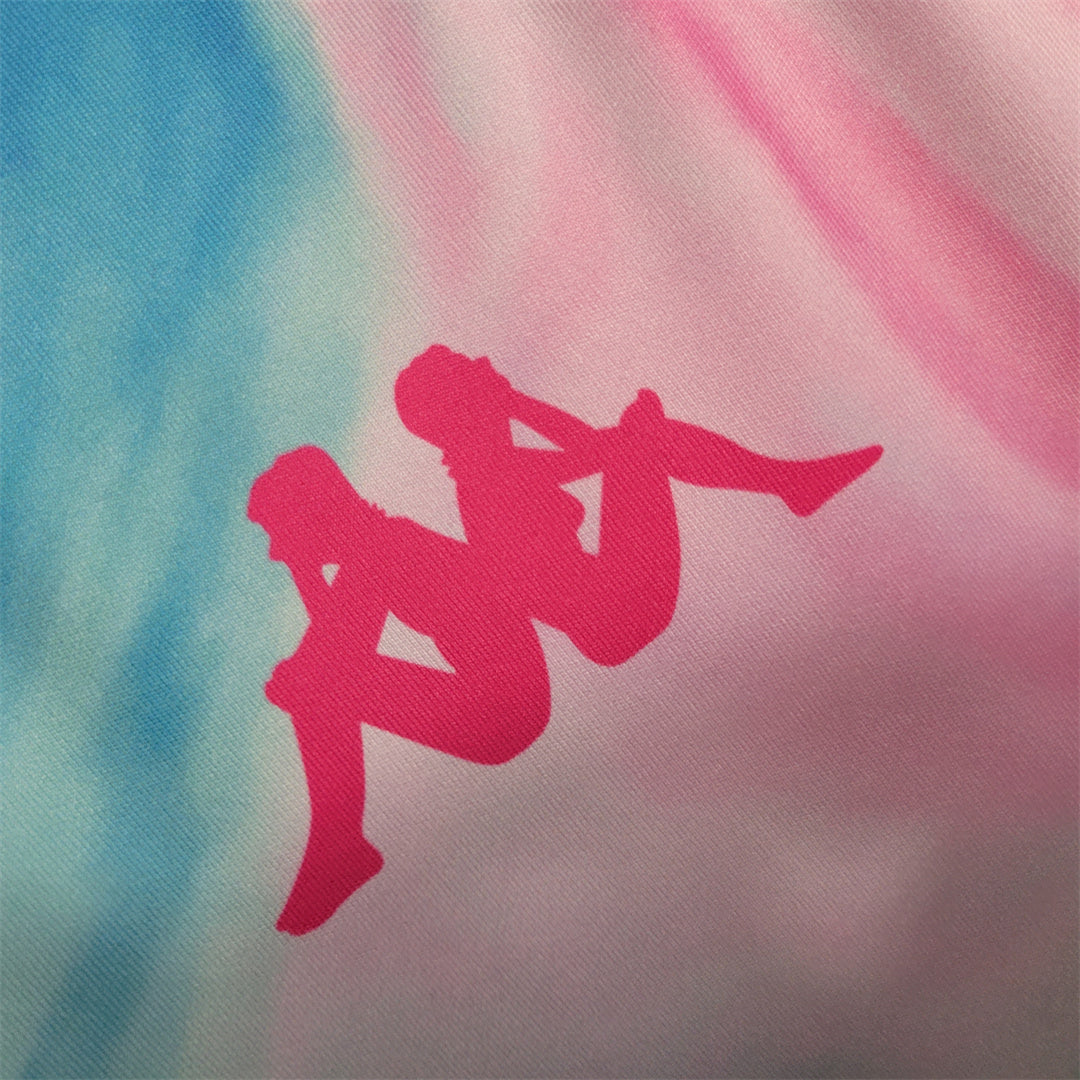 The Empoli Special Edition Kit is a vibrant and unique jersey. It combines the club's traditional colors in a swirling watercolor effect, creating a visually striking design.